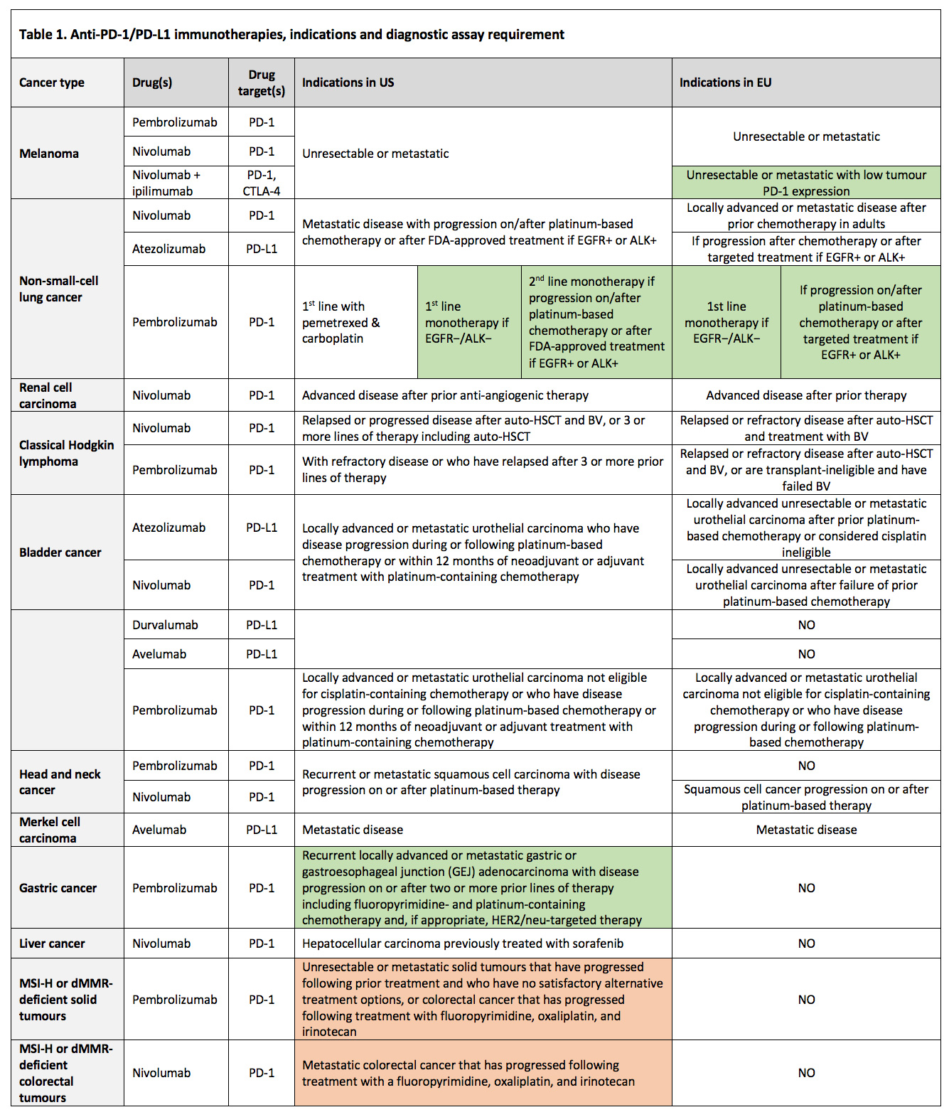 两台PD-1抑制器在欧洲和美国-pemprizumab和nivolumab都获准临床使用(见表1)。两者均指向人体IgG4单克隆抗体块PD-1处理7-10.